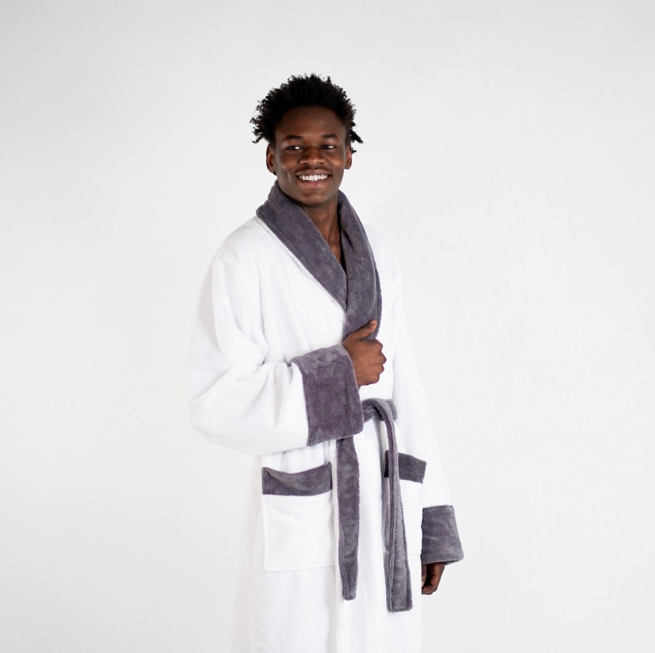 The robe is available in different sizes so that you can find the perfect fit for you. It is machine washable and tumble dryable, making it easy to care for and maintain. The robe comes in white and gray colors, perfect for both men and women. This robe is soft, absorbent, warm, and pleasant for use before and after a shower. Our bathrobes are made with high-quality, well-soft fabric that has antibacterial properties, making it suitable for human health and reducing the risk of allergic reactions.