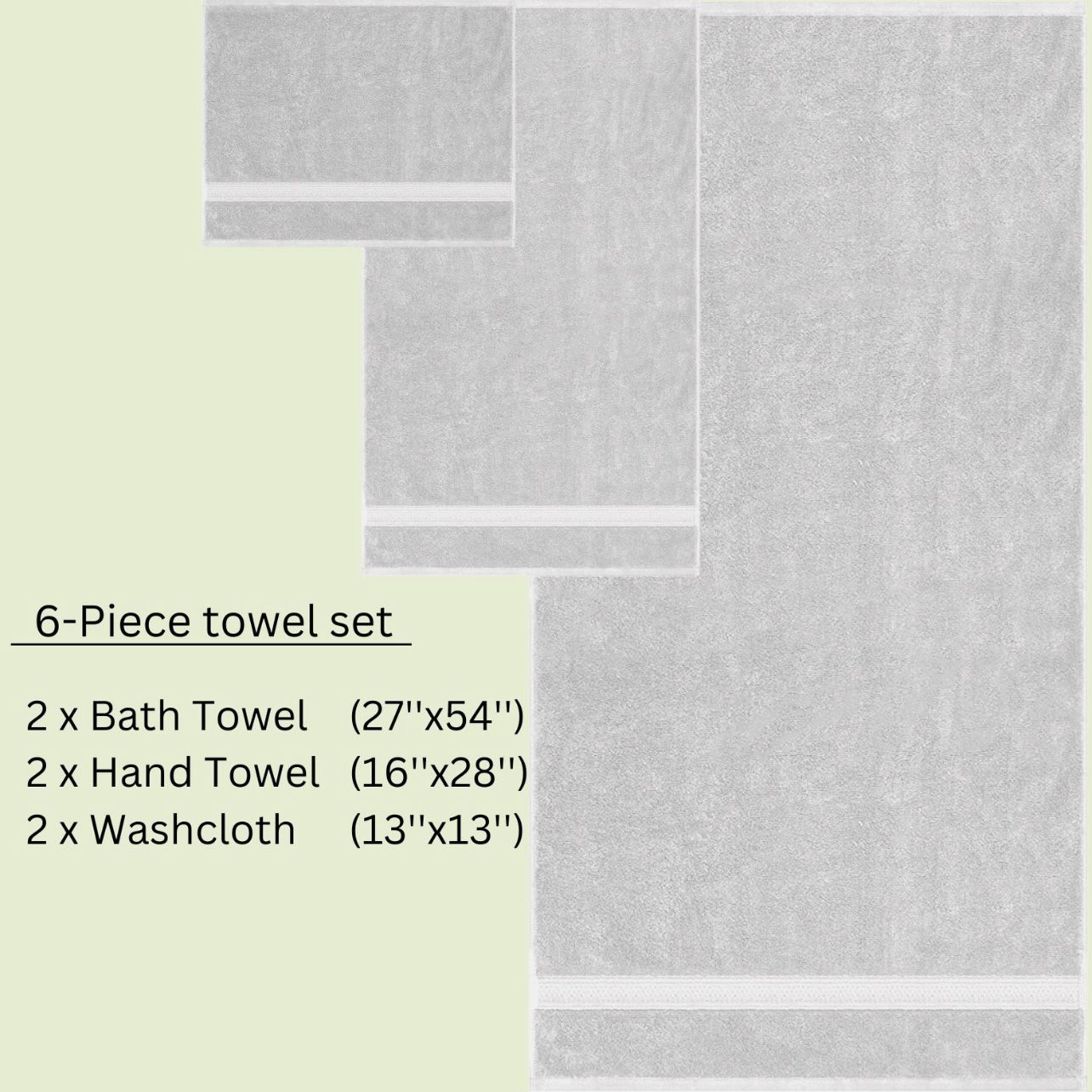 The American Fluffy Towel 6 Piece Towel Set includes 2 bath towels, 2 hand towels, and 2 washcloths, all made from 100% Turkish cotton. This set of towels is perfect for the bathroom and comes in a stylish gray color.