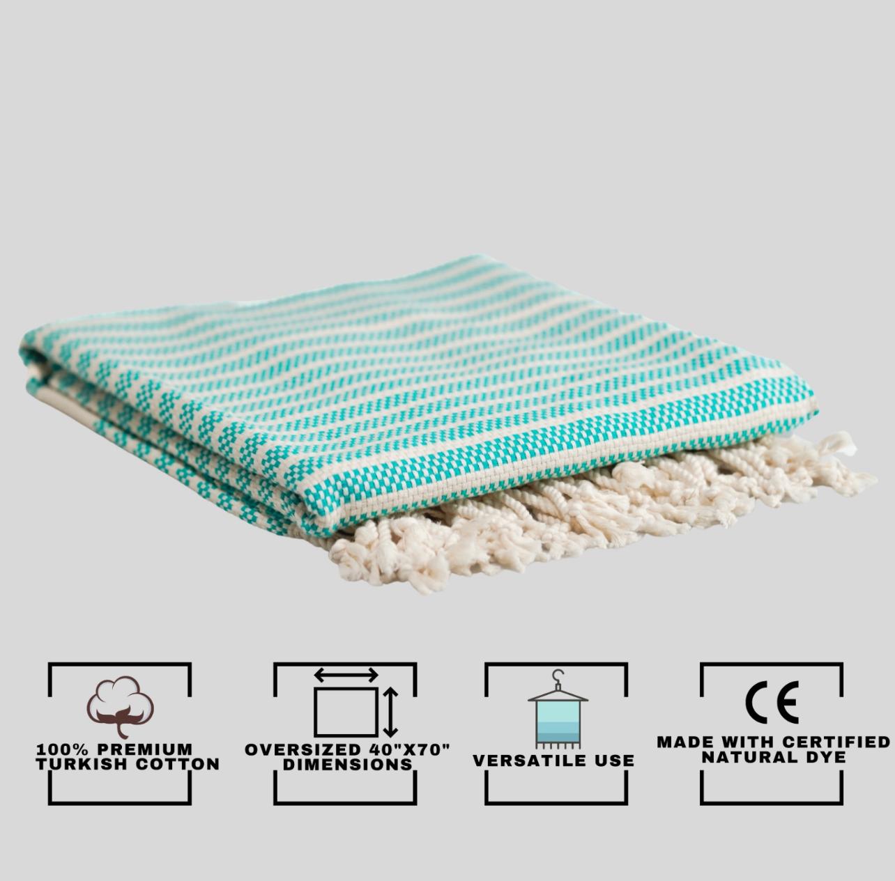 One of the key features of these Peshtemals is their compact and lightweight design, making them an ideal travel companion. They take up minimal space in your luggage and are quick-drying, ensuring that you always have a fresh and dry towel on hand. These towels are available in twelve color options, allowing you to easily coordinate with your swimsuit or beach bag.
