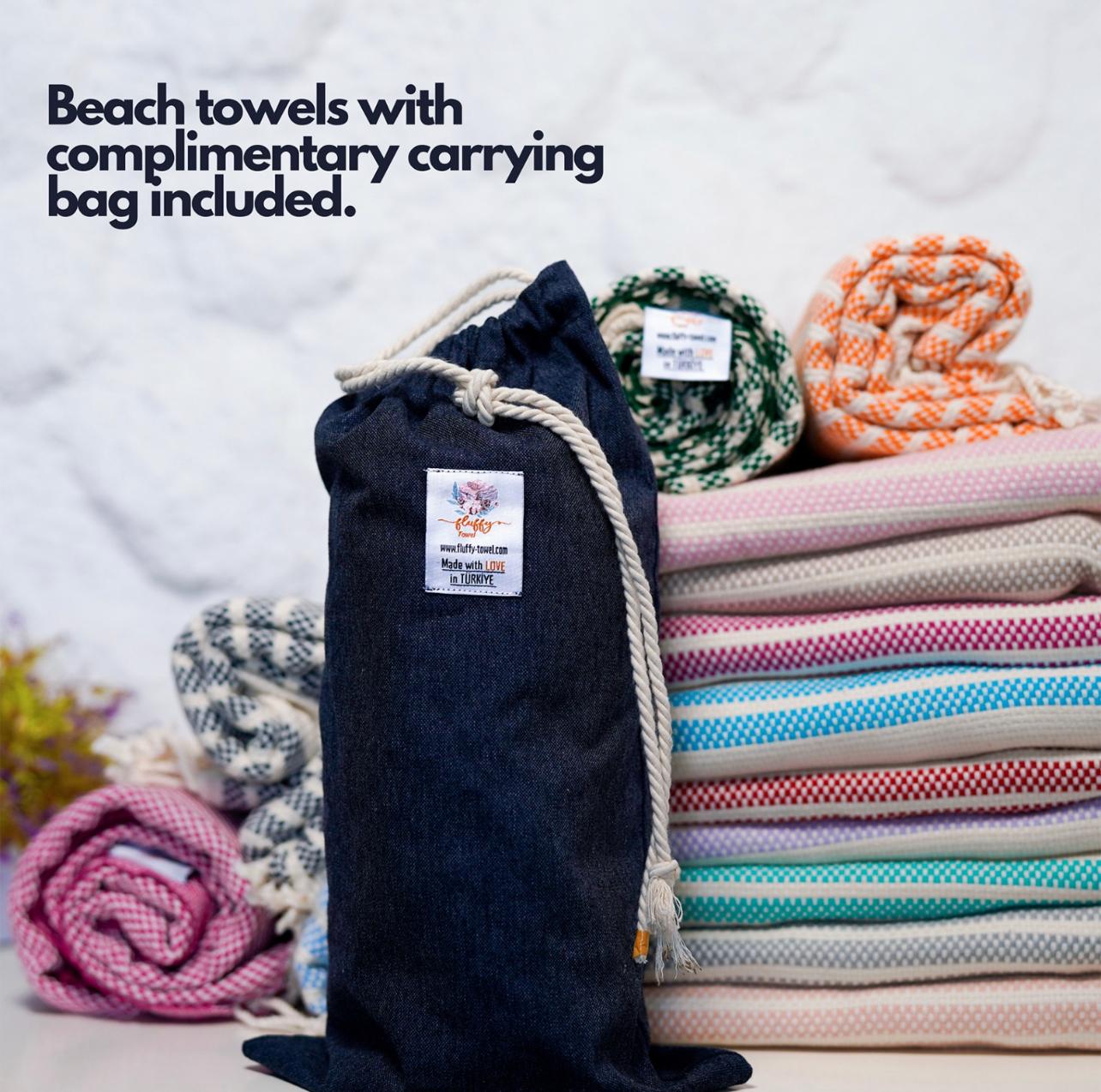 Upgrade your towel collection with the Mediterranean Collection Peshtemals, and experience the ultimate combination of style, comfort, and convenience. Perfect for any setting, whether it's beach, spa, travel, or picnic. They are a great comfort during the journey and you can use them in different colors depending on your swimsuit and easily carry it in your beach bag with the free carrying bag. You'll love the softness, absorbency, and versatility of these towels. So, these towels are not only beach towels but also perfect companions for your everyday life.